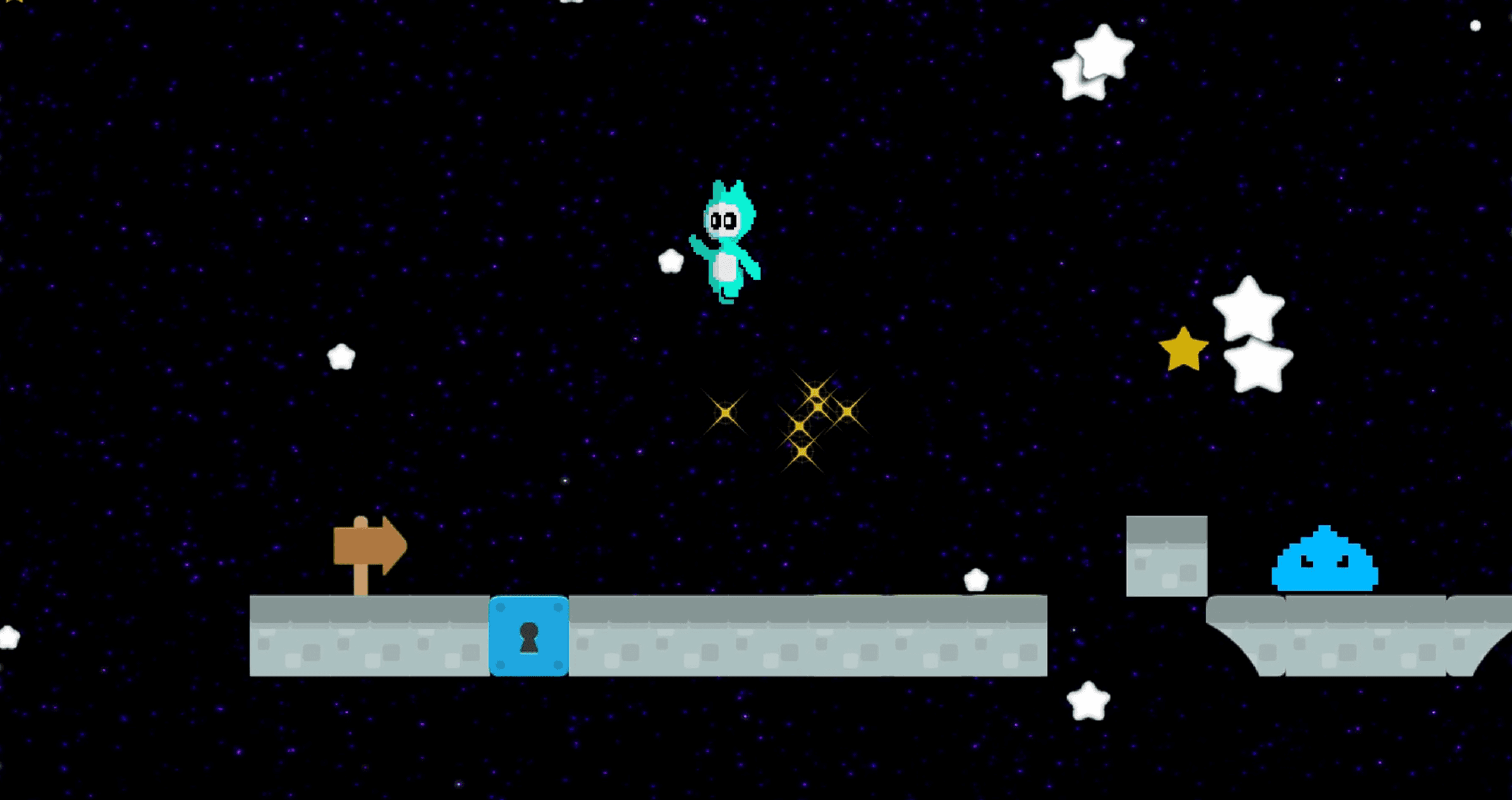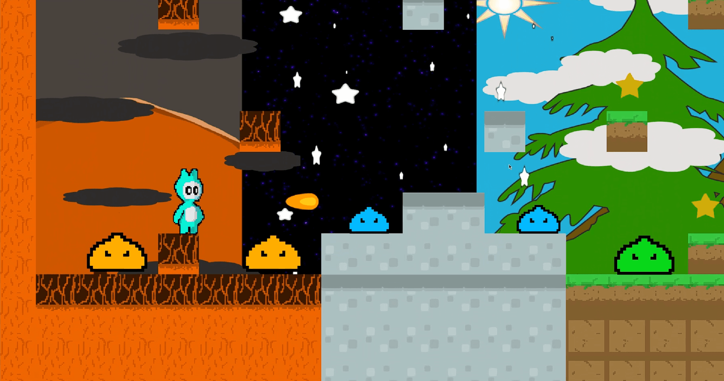 Jump across platforms, collect stars scattered throughout each level, grab power-ups to unlock abilities, avoid hazards, and reach the goal to progress to the next celestial world.